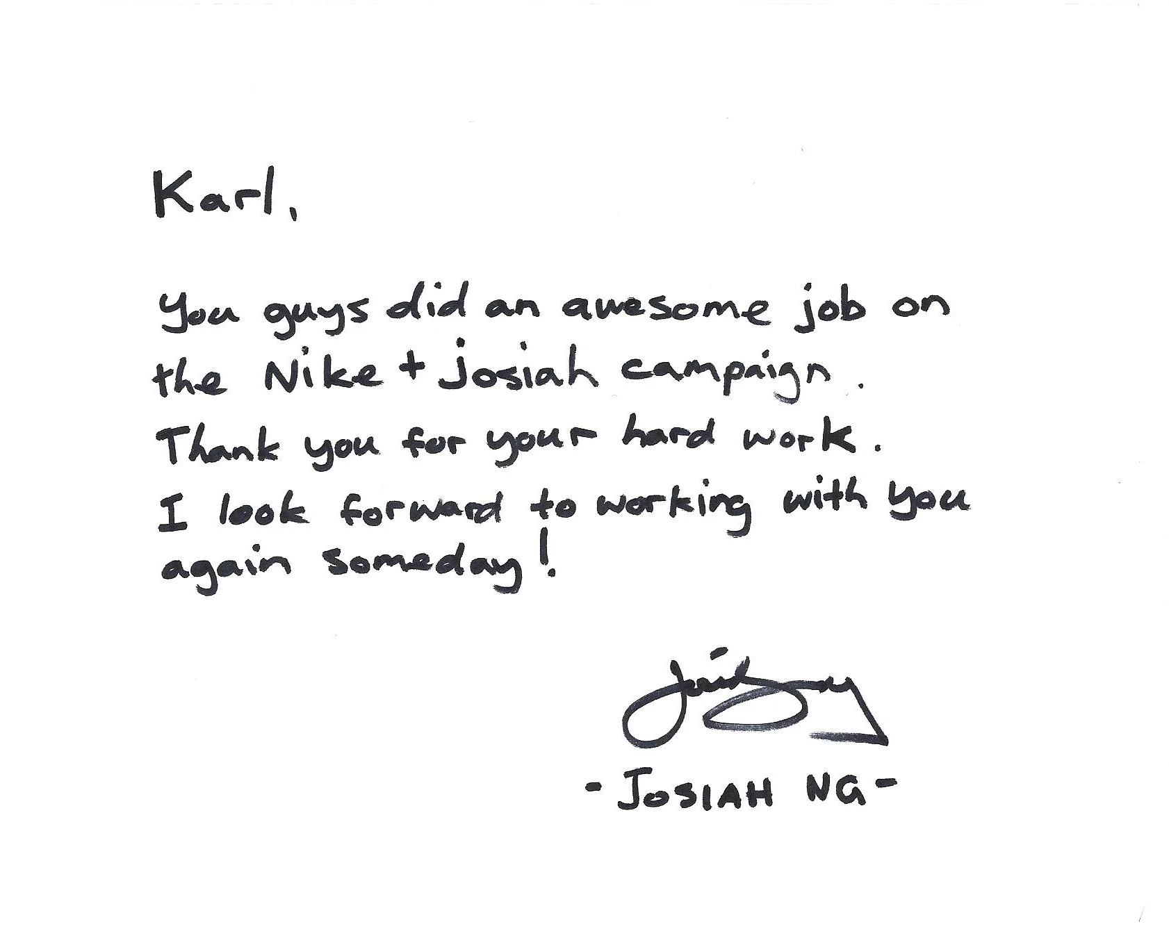 The campaign launch was a phenomenal success. It resonated with everyone, spreading inspiration and showcasing Josiah's athletic passion. The highlight was receiving Josiah's personal recognition and approval through a heartfelt handwritten note to the team!
